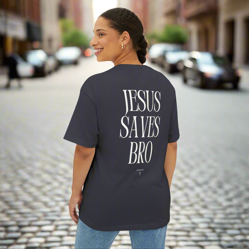 Comfort and style is the name of the game for these boxy t-shirts with a profound and bold message of truth. Their relaxed fit along with the dropped shoulders add that modern aesthetic. Share the good news of the gospel in style repping Jesus in our “Jesus Saves Bro” boxy Tee!